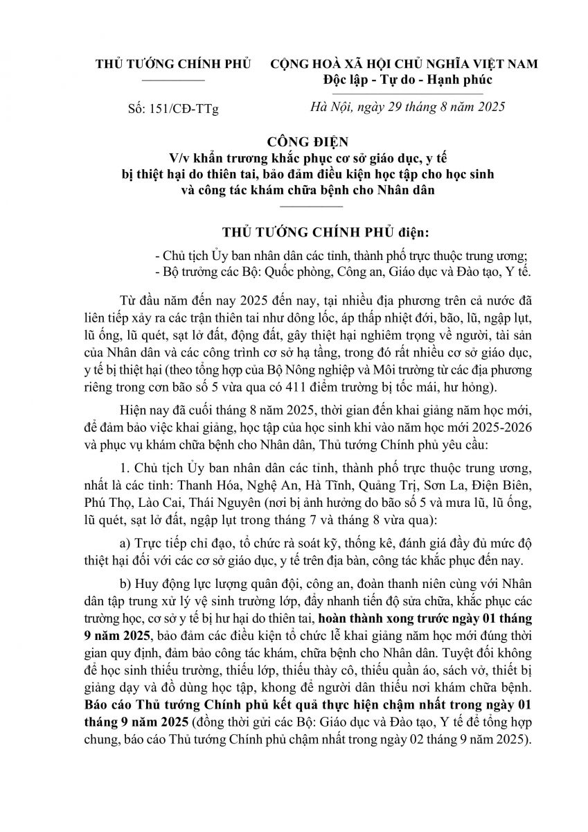 Khẩn trương khắc phục cơ sở giáo dục, y tế bị thiệt hại do thiên tai